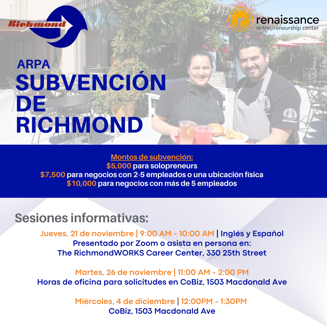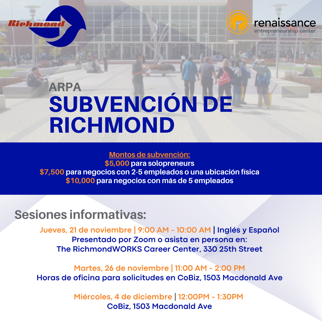 For more information about current classes and business support services, please visit the Renaissance Entrepreneurship Center website at https://rencenter.org/east-bay/.