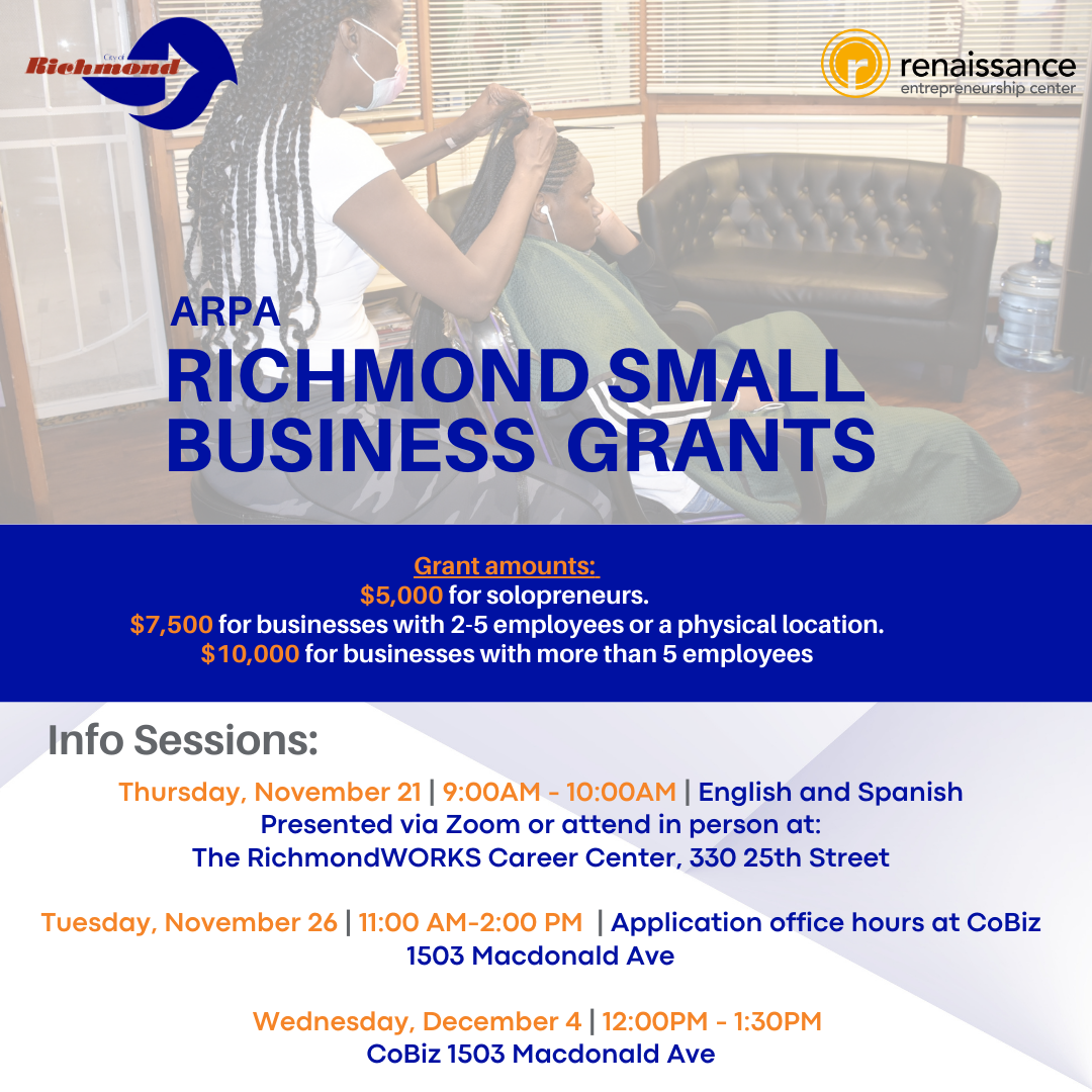 Eligible entrepreneurs are encouraged to continue participating in free business workshops, consultations, and capacity-building programs offered in partnership with the City of Richmond.